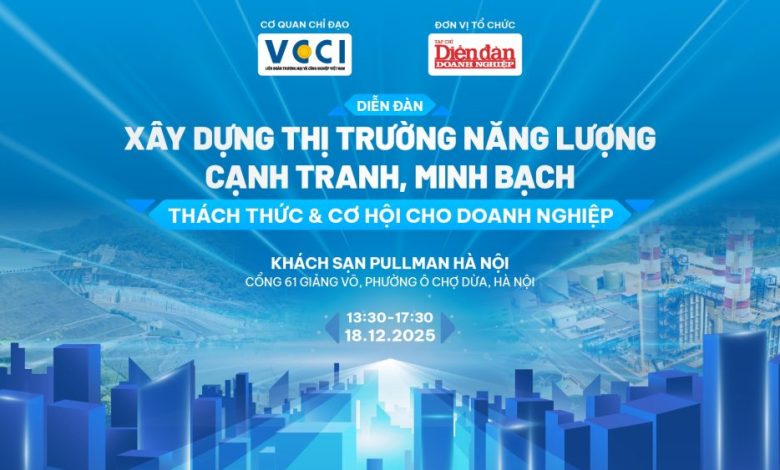 Diễn đàn “Xây dựng thị trường năng lượng cạnh tranh, minh bạch: Thách thức và cơ hội cho doanh nghiệp” do VCCI chỉ đạo, Tạp chí Diễn đàn Doanh nghiệp tổ chức sẽ diễn ra vào chiều 18/12 tại Hà Nội.