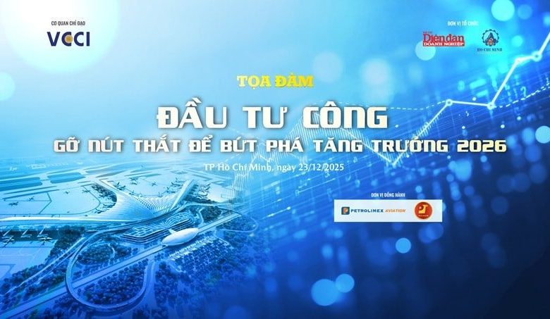 Chiều 23/12/2025 tại hội trường VCCI -HCM sẽ diễn ra tọa đàm “Đầu tư công: Gỡ nút thắt để bứt phá tăng trưởng năm 2026”.