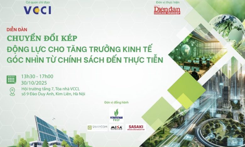 Diễn đàn: “Chuyển đổi kép – động lực cho tăng trưởng kinh tế: Góc nhìn từ chính sách đến thực tiễn” sẽ diễn ra vào chiều ngày 30/10 tại VCCI Hà Nội.