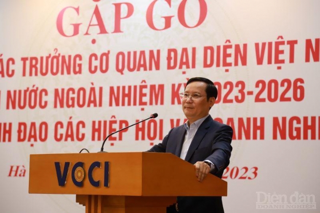 Đồng chủ trì hội nghị, Phó chủ tịch VCCI Nguyễn Quang Vinh cho rằng, điều đáng mừng là các cơ quan và doanh nghiệp Việt Nam đã và đang nắm bắt được các xu thế lớn ờ trên thế giới như tăng trưởng xanh, sản xuất xanh, tăng trưởng bền vững. Trong đó, vai trò của các cơ quan đại diện Việt Nam ở nước ngoài là vô cùng quan trọng. VCCI thường xuyên có các chương trình thương mại quốc gia được tổ chức tại nước ngoài, và đây là cơ hội để doanh nghiệp và các cơ quan ngoại giao cùng hợp tác để đẩy mạnh thương mại của Việt Nam ra thế giới.