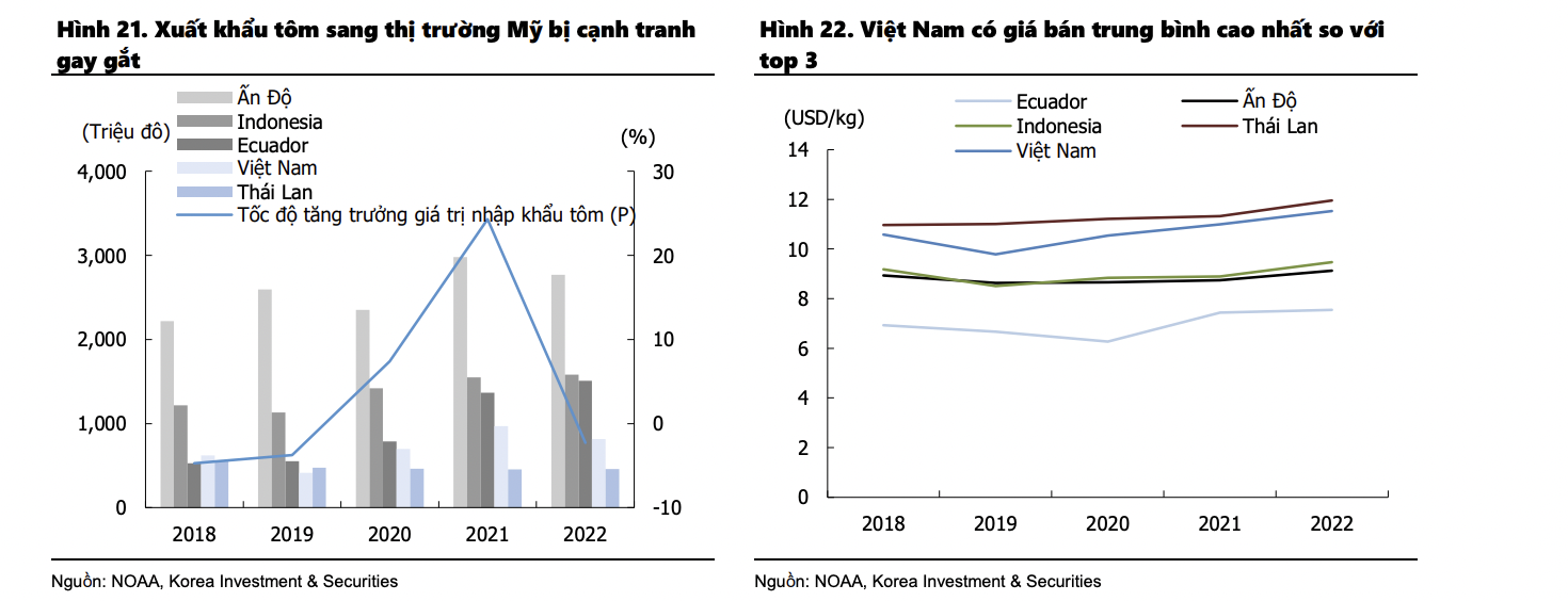 KIS cho rằng tốc độ tăng trưởng của thị trường tôm sẽ chậm lại để phản ánh những “cơn gió ngược” khiến tiêu dùng tôm thấp trong năm 2023. KIS dự đoán nhu cầu thấp hơn ở nhiều thị trường, đặc biệt là Mỹ và EU sẽ làm giảm sản lượng xuất khẩu các sản phẩm tôm. Đồng thời, giá bán trung bình sẽ giảm, dẫn đến tổng xuất khẩu tôm năm 2023 sẽ giảm tốc.