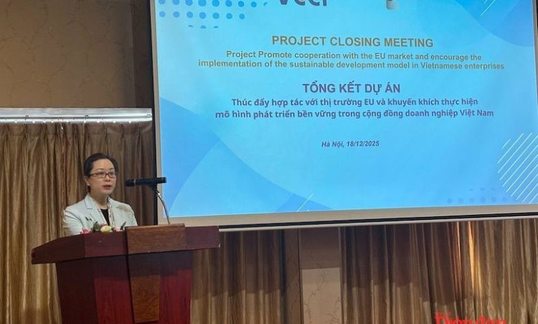 Phát biểu tại sự kiện tổng kết dự án, bà Trần Thị Lan Anh, Tổng thư ký VCCI, nhấn mạnh rằng phát triển bền vững không còn là lựa chọn mang tính xu hướng, mà đã trở thành yêu cầu bắt buộc đối với doanh nghiệp muốn tham gia sâu vào chuỗi giá trị toàn cầu, đặc biệt là thị trường EU. Theo bà Lan Anh, nhiều doanh nghiệp Việt Nam, nhất là doanh nghiệp nhỏ và vừa, vẫn đang gặp khó khăn trong việc tiếp cận thông tin, hiểu đúng và triển khai các tiêu chuẩn bền vững theo thông lệ quốc tế.