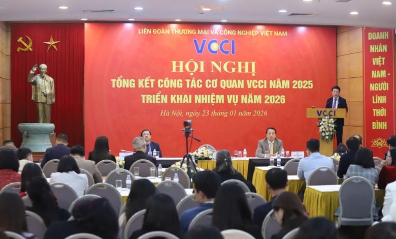 Ngày 23/01, Liên đoàn Thương mại và Công nghiệp Việt Nam (VCCI) tổ chức Hội nghị Tổng kết công tác năm 2025 và triển khai phương hướng, nhiệm vụ năm 2026. Hội nghị đánh giá toàn diện kết quả hoạt động của VCCI trong năm qua, đồng thời xác định các nhiệm vụ trọng tâm cho năm cuối thực hiện Nghị quyết Đại hội VCCI lần thứ VII.