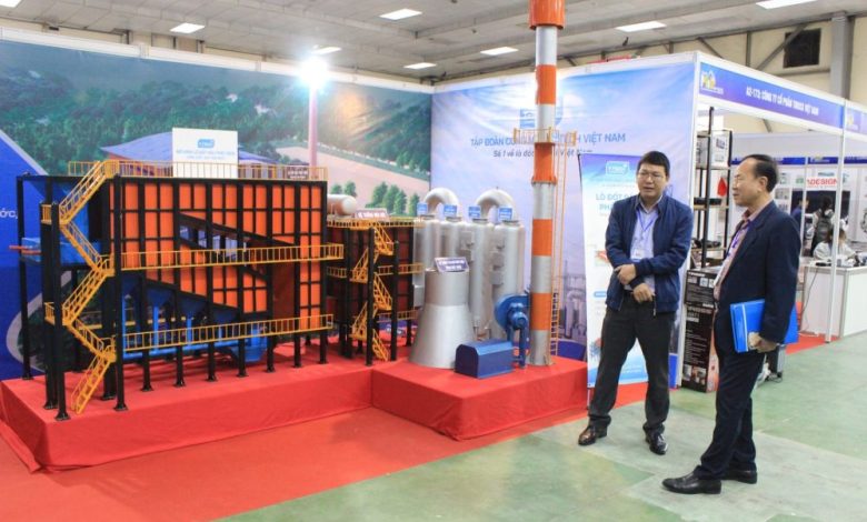 Mô hình lò đốt rác phát điện: mô hình 500 tấn công suất 10 mega W, các tháp xử lý khí đa năng, tháp hấp thụ dioxin và furan đảm bảo tiêu chuẩn về môi trường của công ty CP Tập đoàn công nghệ T-Tech Việt Nam