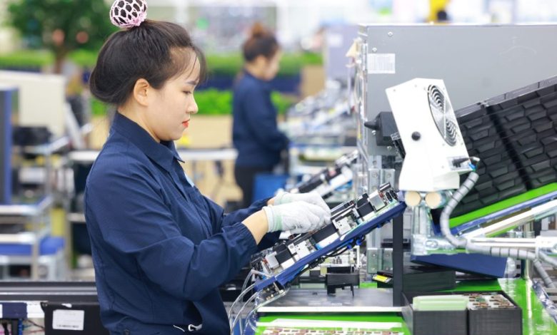 Nhân viên Samsung đang làm việc trên dây chuyền sản xuất
