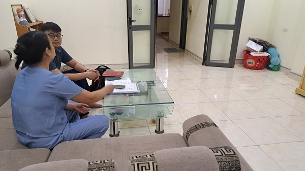 Bà Trần Thị Hiền trao đổi với phóng viên về việc bị các đối tượng lừa đảo làm giả giấy chứng tử. Ảnh: Khôi Nguyên